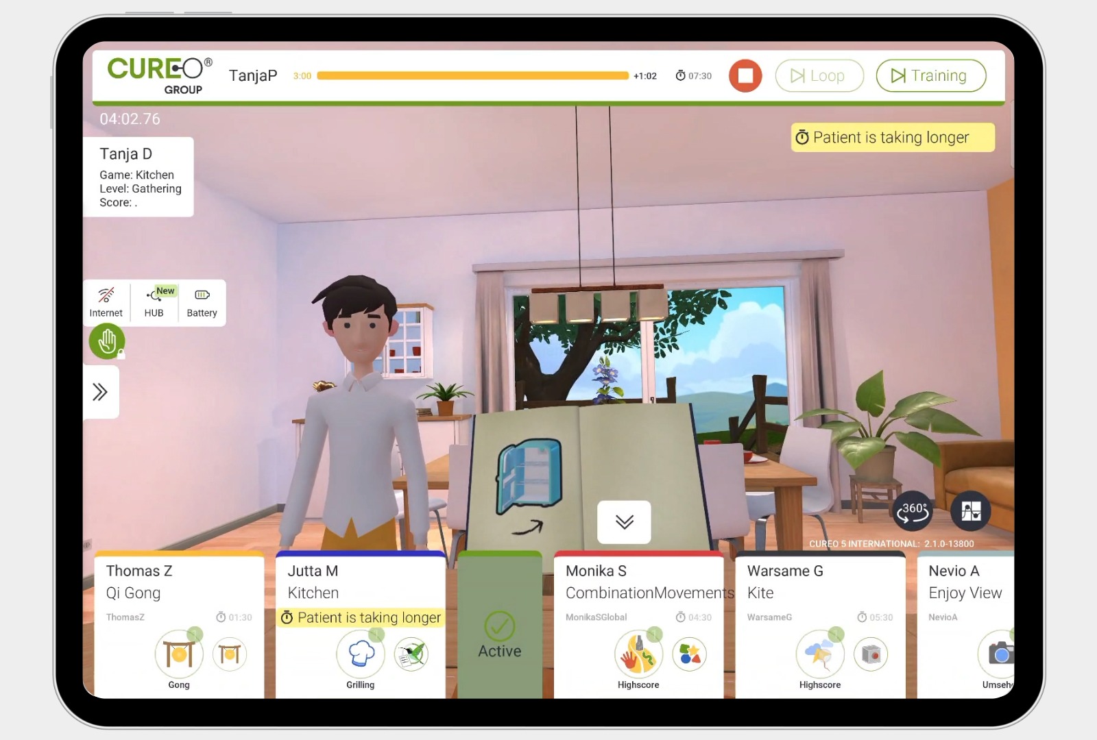 CUREO is a therapy software for rehabilitation with more than 50 trainings in 7 modules. It utilizes Virtual Reality and gamification to increase patient motivation and therapy adherence and it’s already implemented in far more than 150 clinical and ambulantory institutions (used for physiotherapy, occupational therapy, and neuropsychology) for patients with sensorimotor, cognitive, and perceptual impairments.
